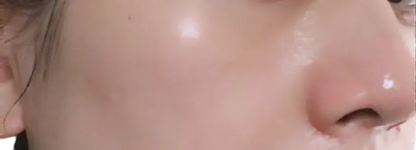 グリーン系のコントロールカラーを使う前は、ホホと小鼻に赤みが目立ちます。